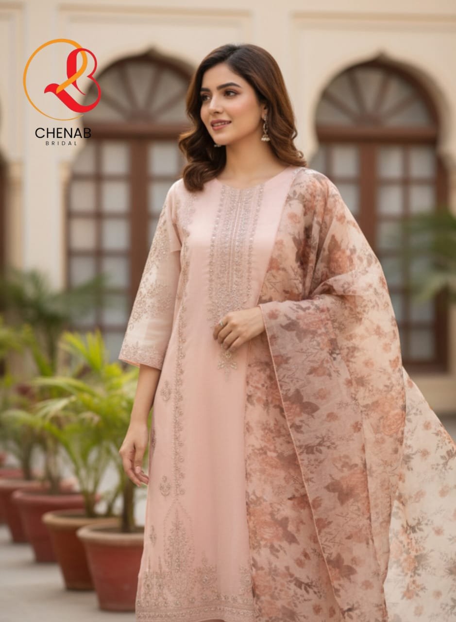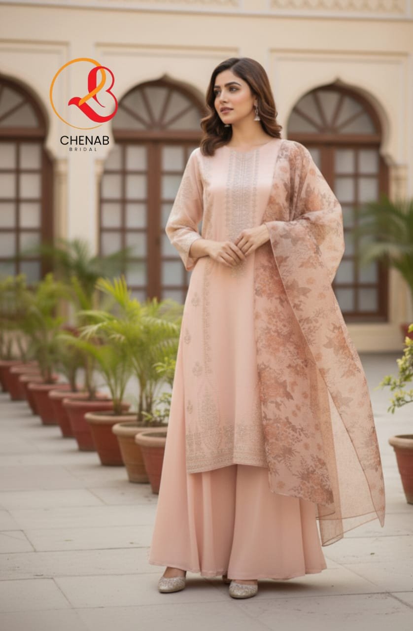 Kameez Fabric : Organza ( Rasham embroidery on front kameez with light touches of pearls and stones ).