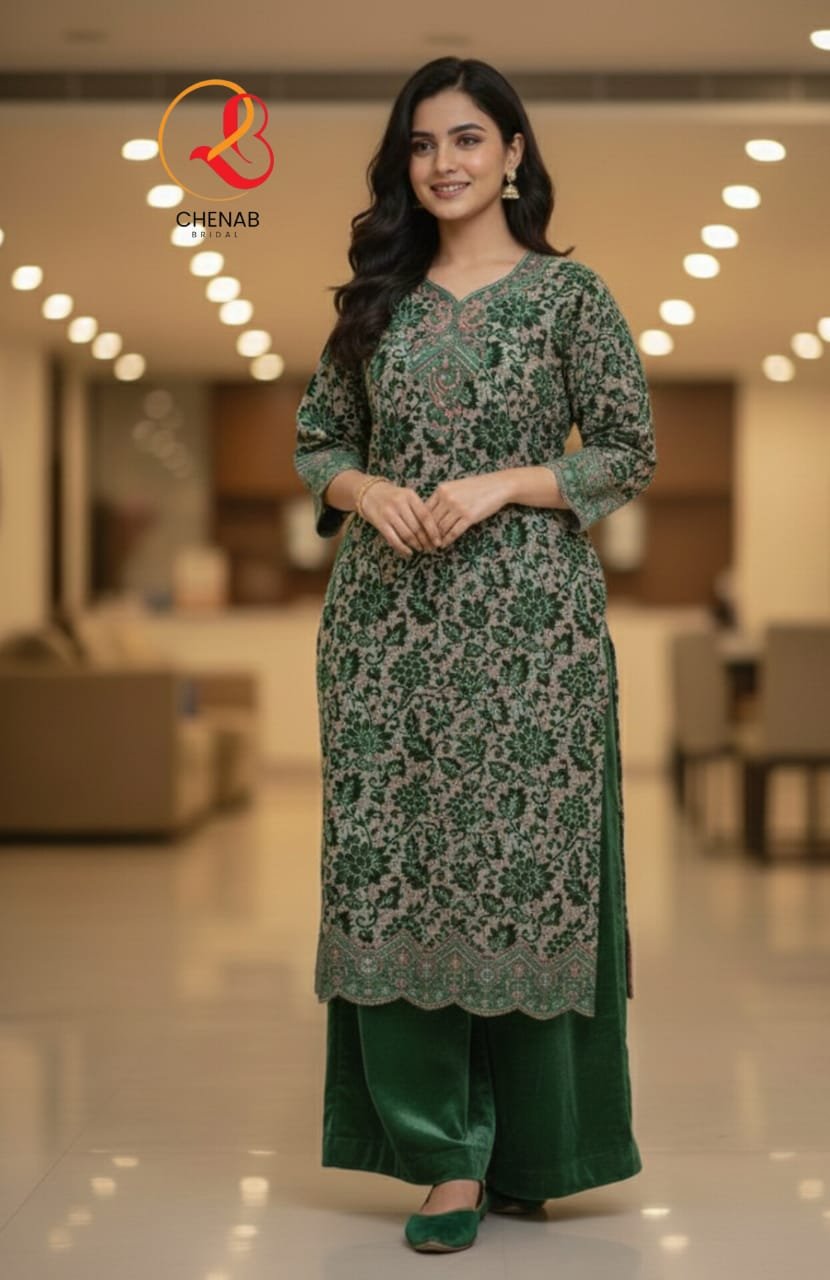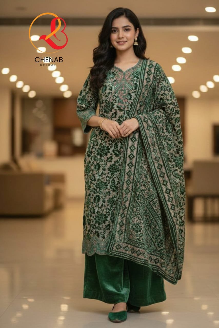 This beautiful three-piece suit is made with soft palachi fabric for a graceful look.