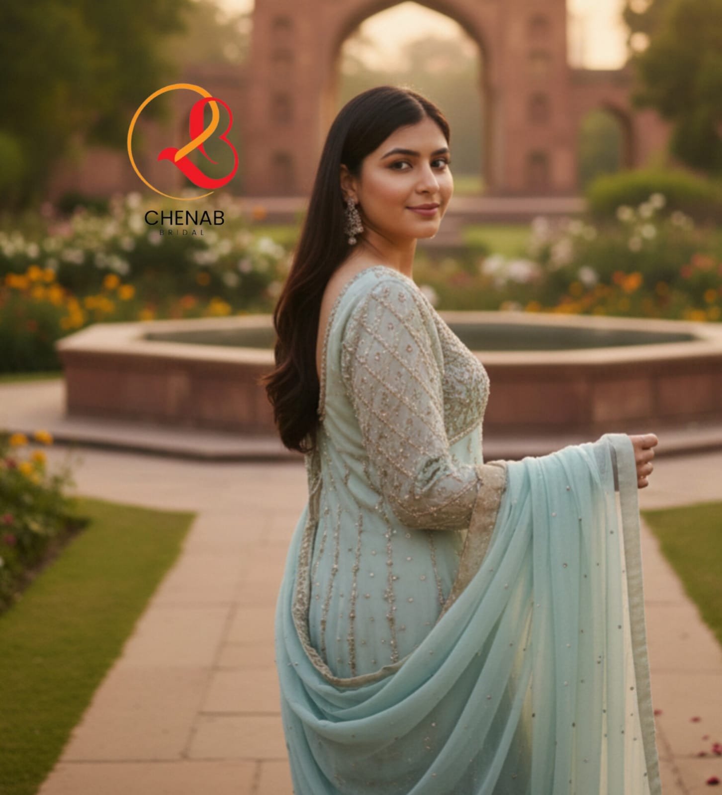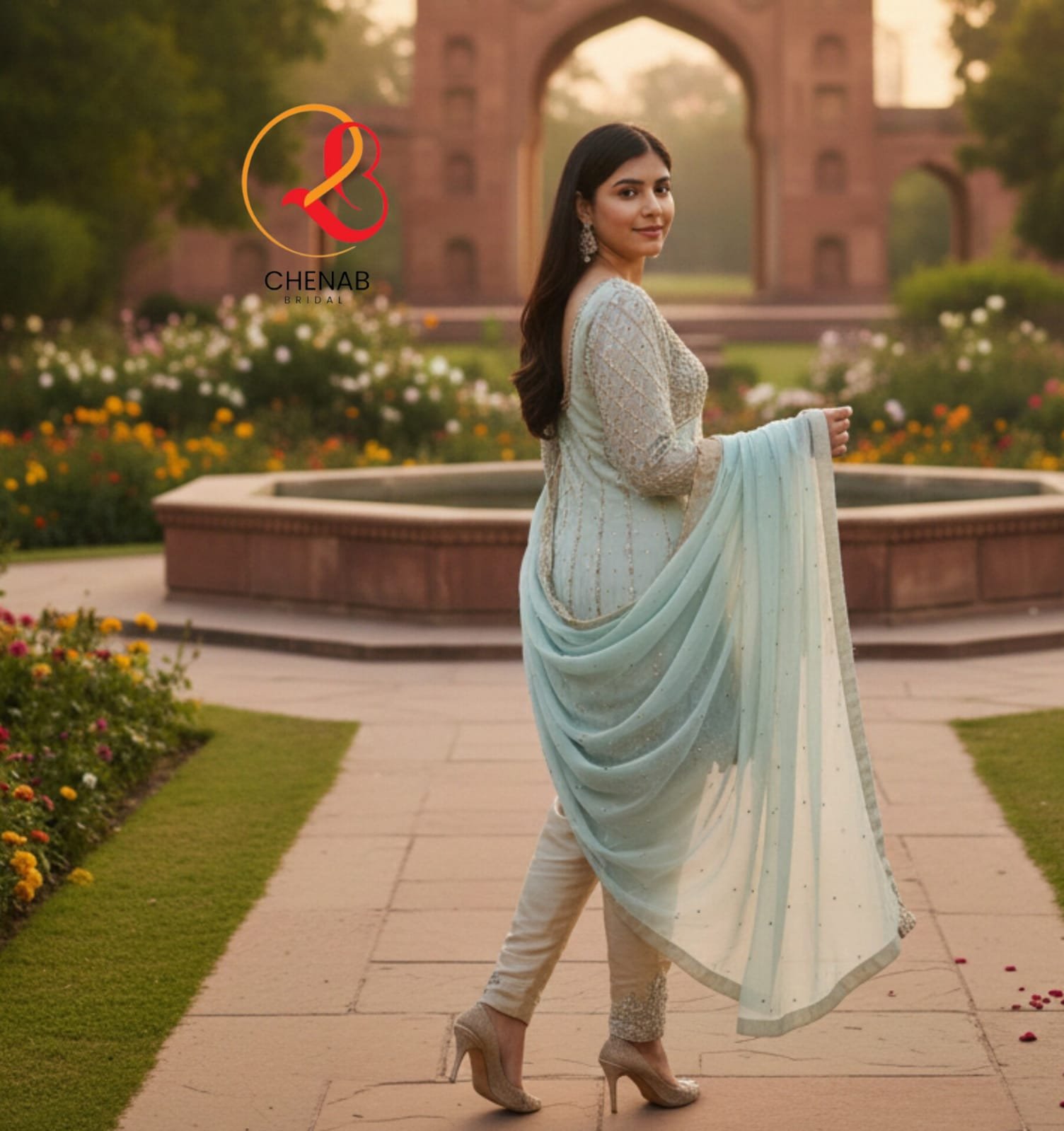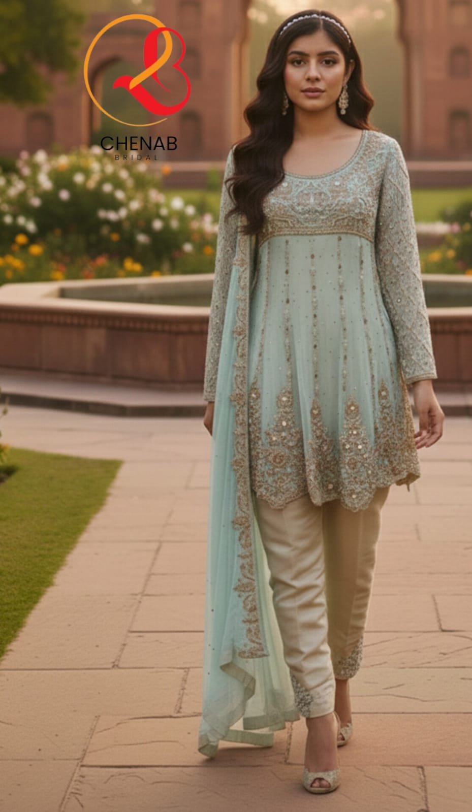 This luxury outfit is crafted from soft chiffon fabric for a graceful look.
