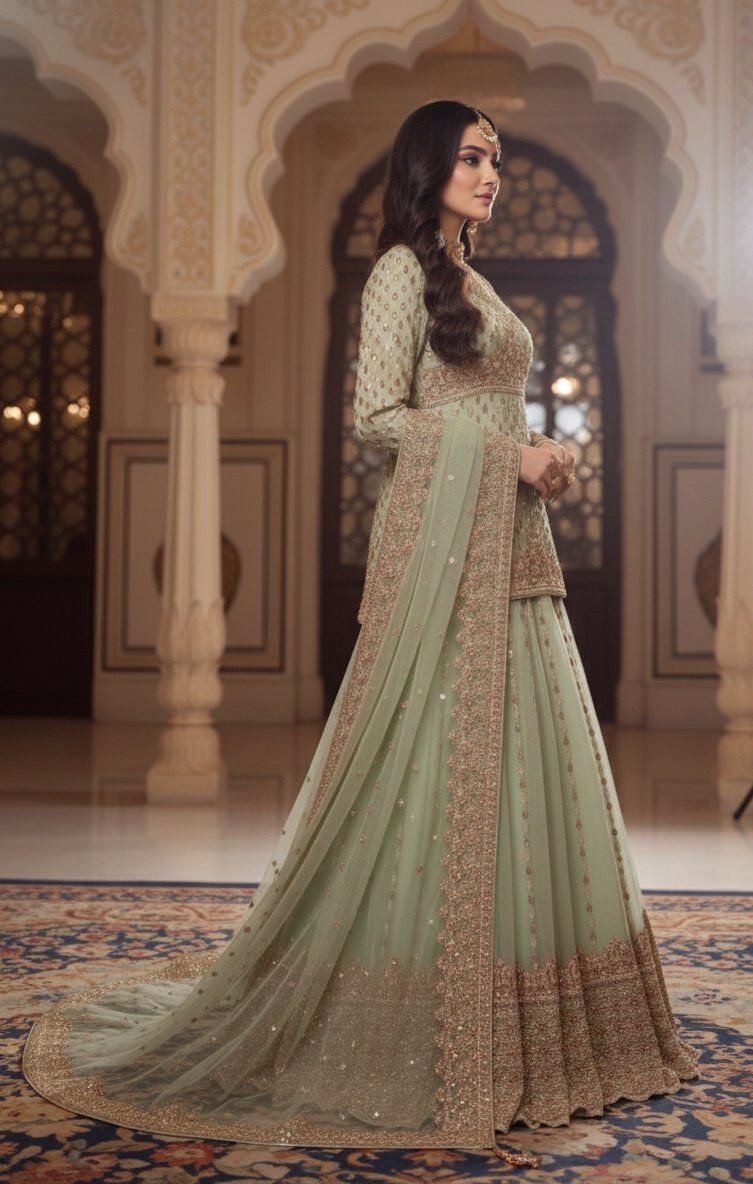 A soft organza dupatta with delicate handwork completes the ensemble beautifully.