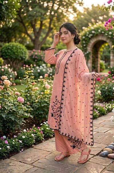 Palazzo Fabric: Cotton ( Elegant embroidered detailing with fine Resham work ).