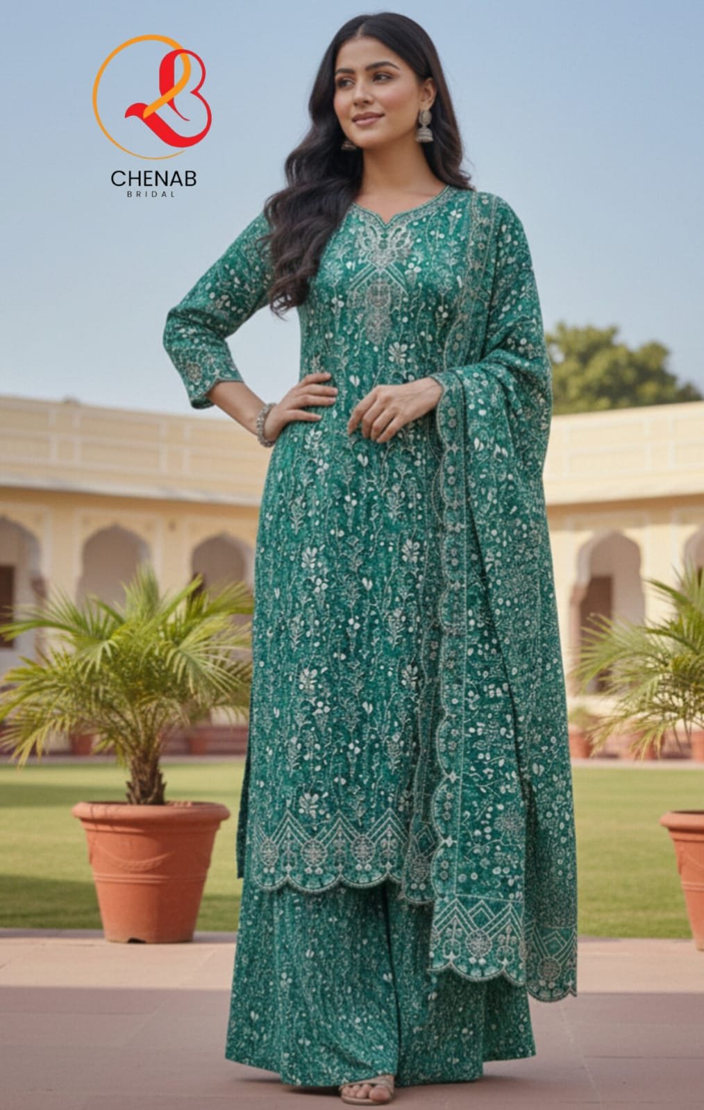 Embroidery patches on the neckline, sleeves, and daman add a beautiful finishing touch to the outfit.