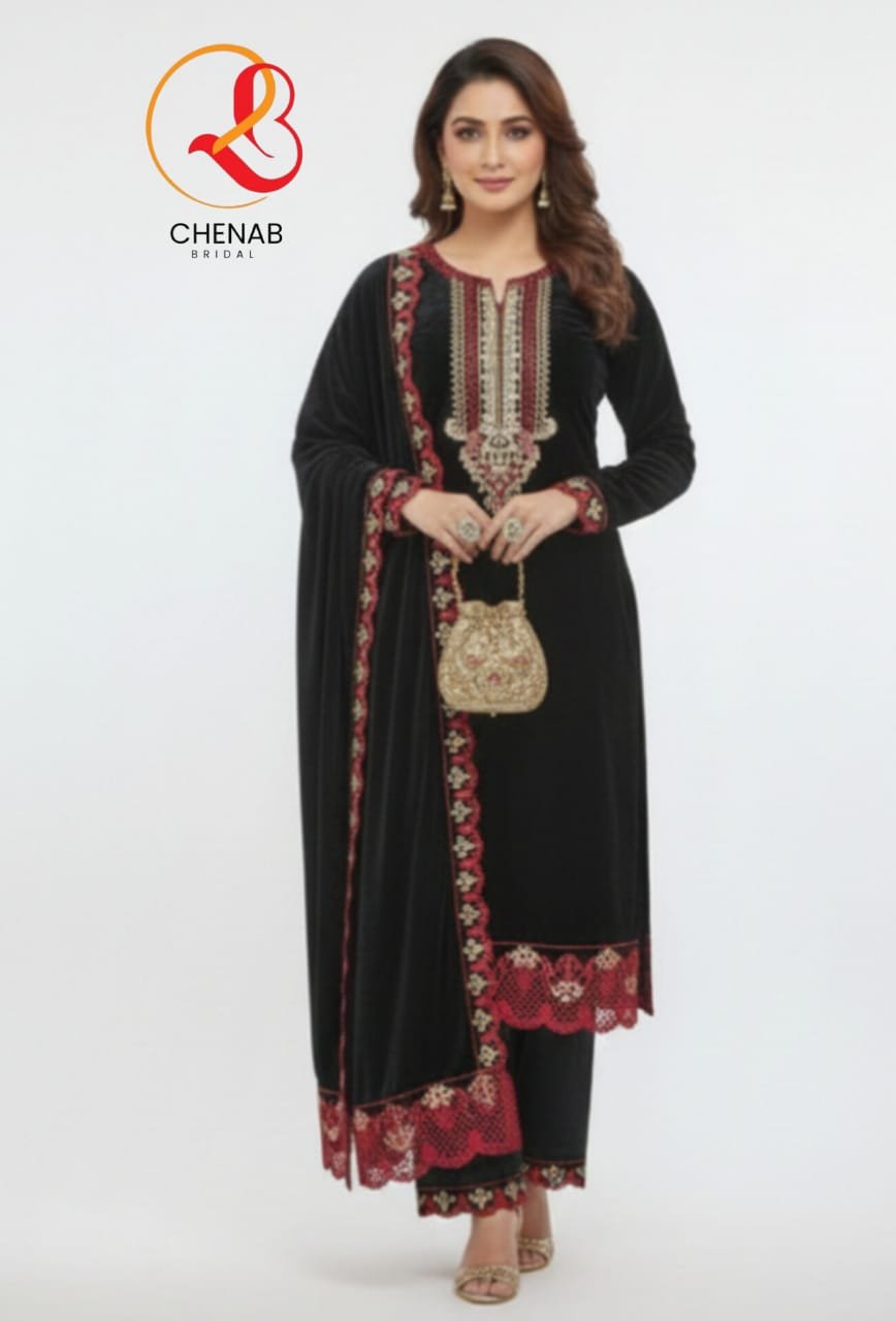 Kameez Fabric : Velvet ( neckline , daman , and sleeves ) Embroidery